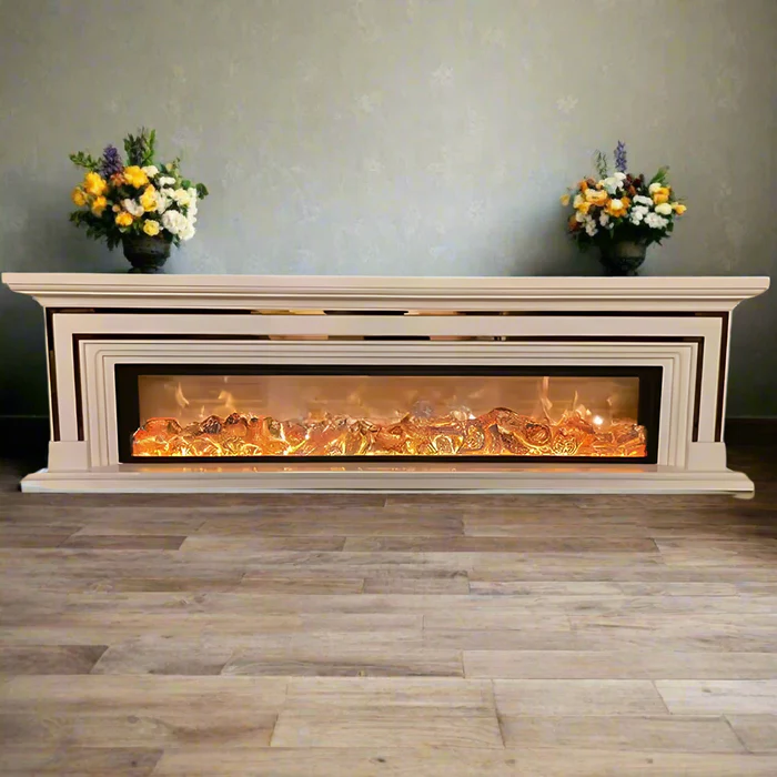 Semineul electric Majestic Gold XXL aduce un plus de rafinament si stil in orice locuinta, fiind ideal pentru interioarele sofisticate. Fabricat din lemn masiv de stejar alb, cu insertii aurii, acest model impresioneaza prin dimensiunile sale generoase si prin atentia la detalii. Designul sau armonios, impunator si finisajele impecabile confera fiecarui spatiu o atmosfera de lux si confort desavarsit.